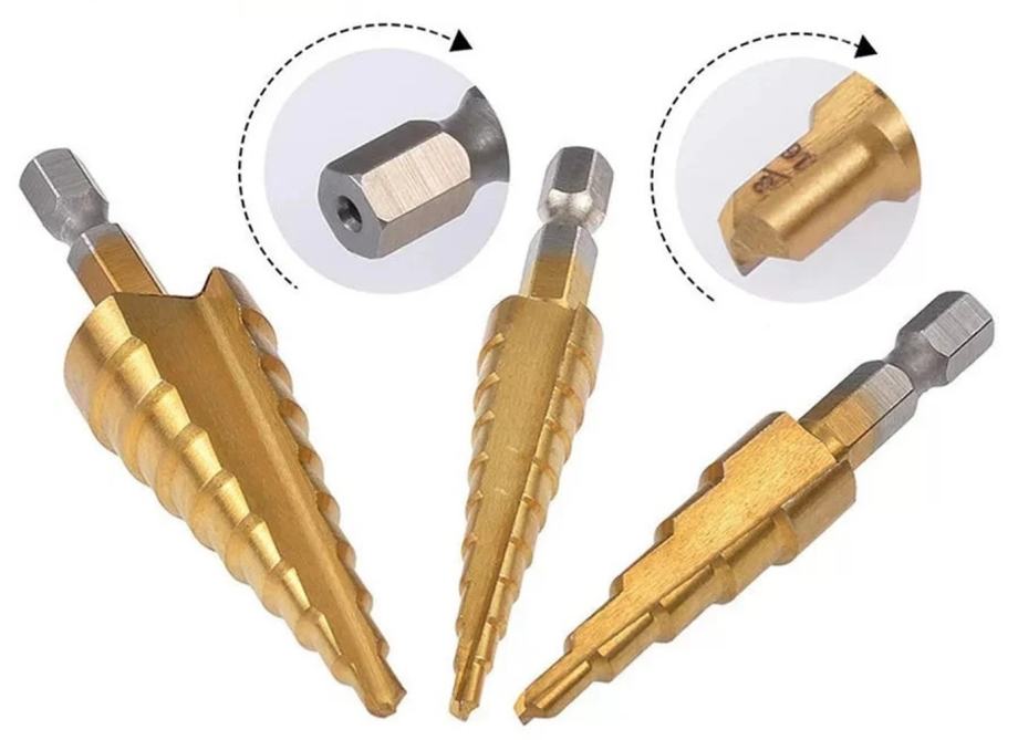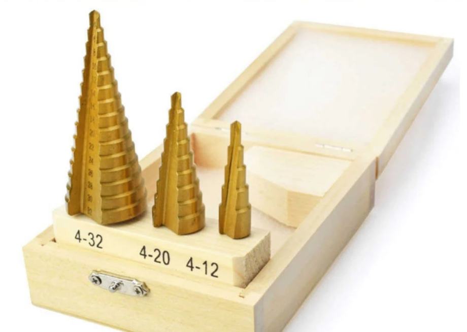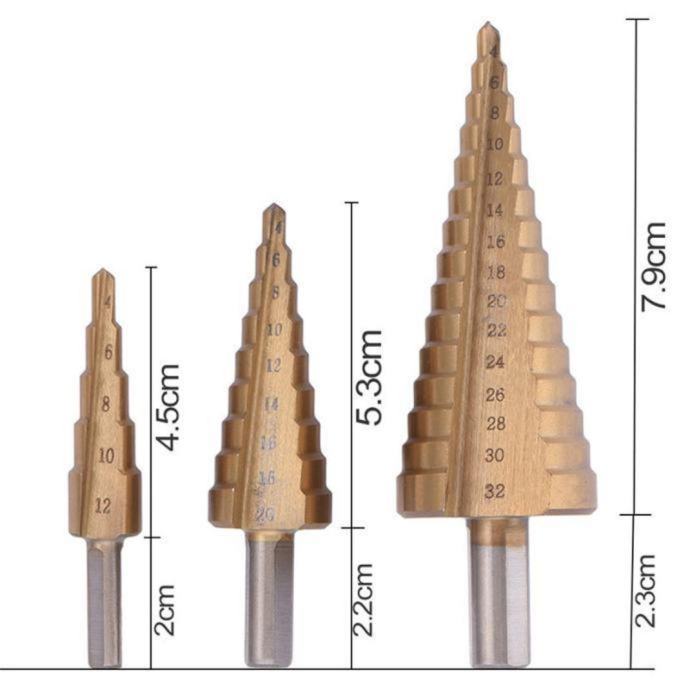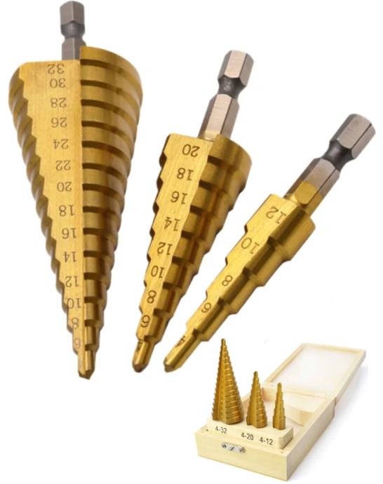 ✿ Set od 3 stepenasta svrdla s više veličina, rašper za obradu drveta s metalnom jezgrom za otvaranje rupa, precizno konusno svrdlo, idealno za drvo, metal i plastiku, višenamjenski alat za bušenje.