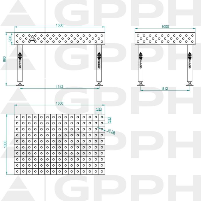 Stol za zavarivanje 1500x1000 mm, 3D, Nitrirani, D28 mm, 100x100 mm, GPPH
