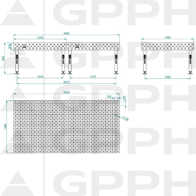 Stol za zavarivanje 3000x1480 mm, 3D, Nitrirani, D28 mm, 100x100 mm, GPPH PLUS