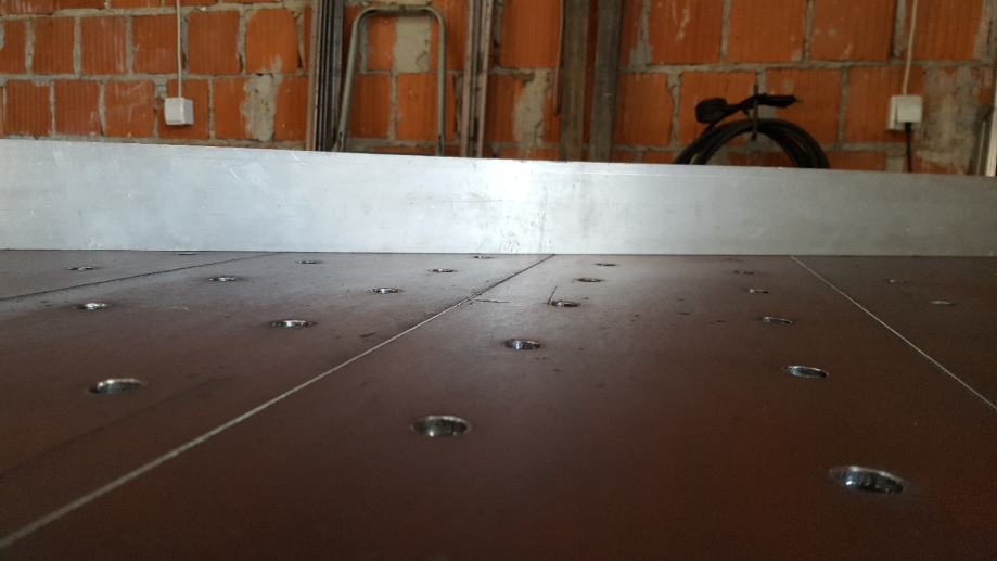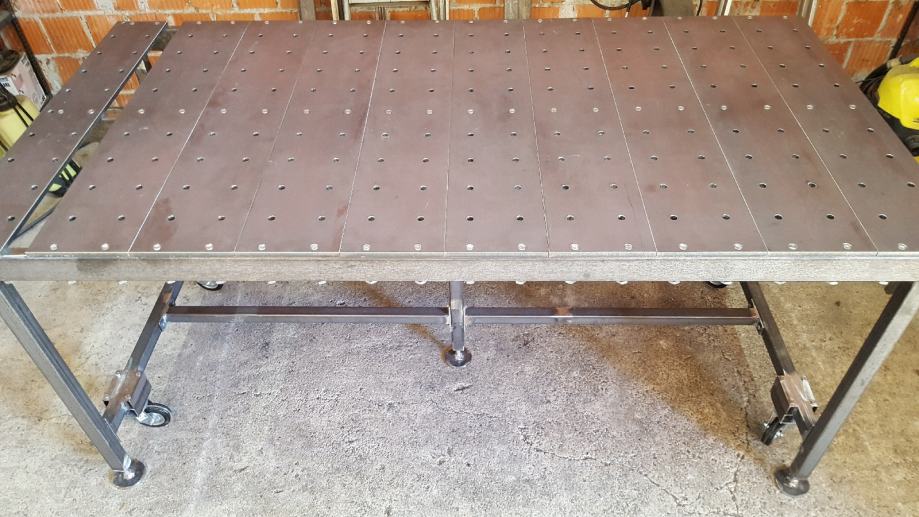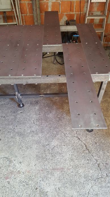 Stol je korišten i više nije u stanju kao na slikama. Vidljivi su tragovi korištenja. Na stolu nije nikad nešto zavareno ili priheftano za njegove ploče, tako da je još uvijek potpuno ravan (odstupanje od rubova na sredini 1,5 mm). Donja strana ploča je nekorištena, pa je moguće okrenuti taj dio i dobiti potpuno neoštećen gornji dio.