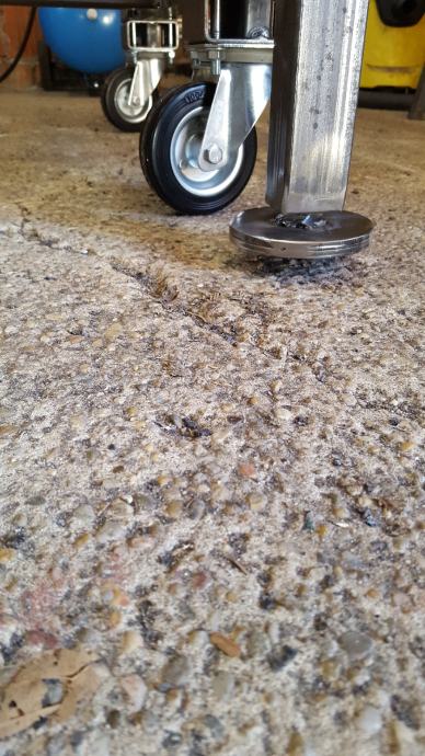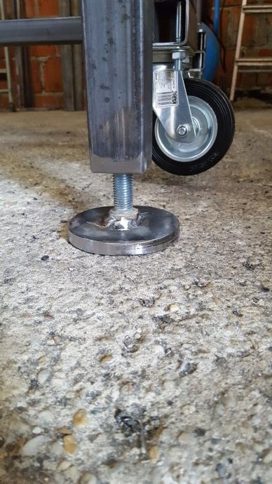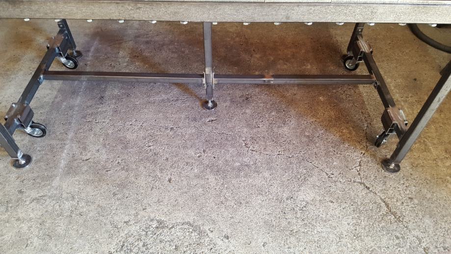 Stol je pomičan na kotačima koji se podižu spuštanjem nivelara.