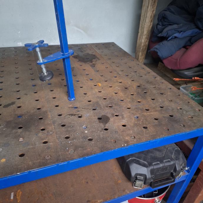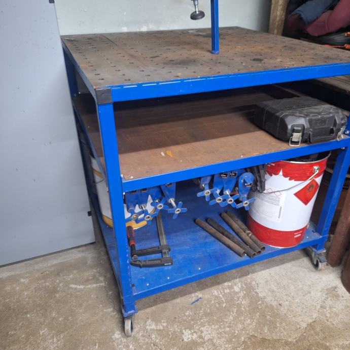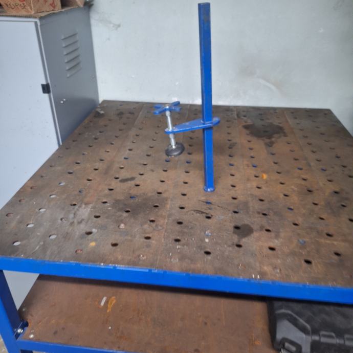Stol za zavarivanje,moze i sluziti kao obican radni stol...rupe fi 16 dolazi sa 10 stega....dimenzije stola 1000x1000 na pokretnim kotacima
