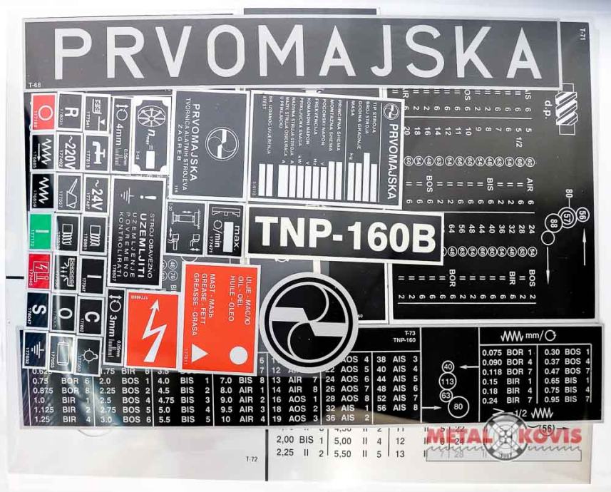 Tablica za tokarski stroj Prvomajska TNP-160B