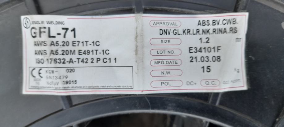 Punjena prahom žica za zavarivanje pakovanje na kalemu 10kilograma