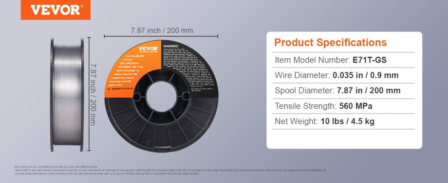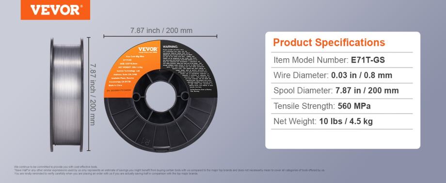 Na prodaju praškom punjena žica koja se koristi bez CO2 plina. Dostupna u promjeru 0.8mm i 0.9mm. Masa 1 koluta žice 4.5kg. Promjer koluta 200mm.