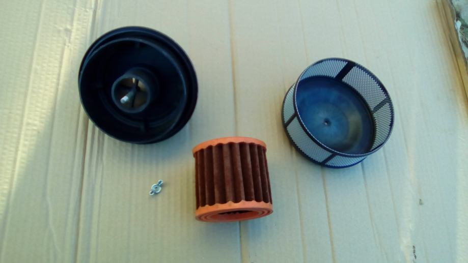 4. promjer 120 mm, visina 235 mm, kapacitet 1700 l/min, priključak vanjski Fi 39,5 mm, unutarnji Fi 34,5 mm. Primjenjiv ja za razne motore koji rade u uvjetima gdje ima prašine. Cijena 19,00 eura
