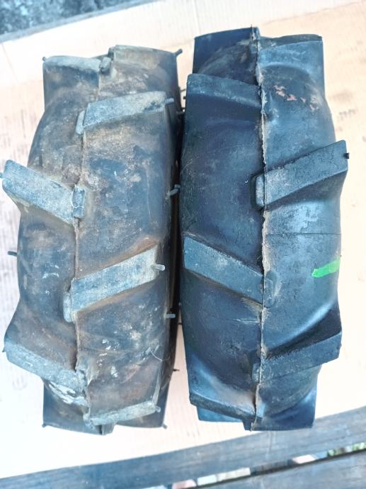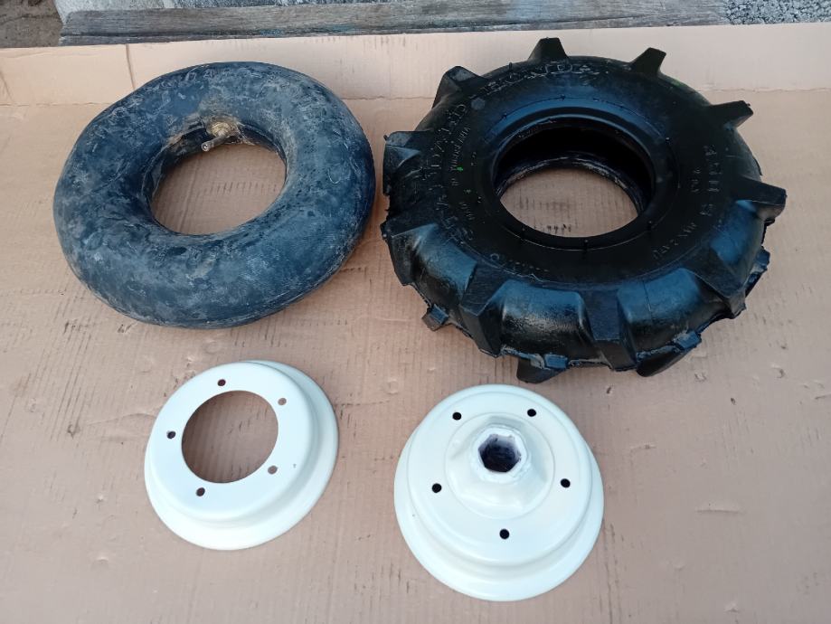 Gumeni kotači za Mio Standard motokultivatore, odgovaraju za modele: 250, 265, 300, 350, 400, 420, 425, dimenzija 3,5 -5,00, odgovaraju na osovinu šesterokut 23 mm. Promjer kotača u cm iznosi 31 cm. Kotači su gotovo ne korišteni. napumpane prije desetak dana i drže pritisak. Slanje HP.