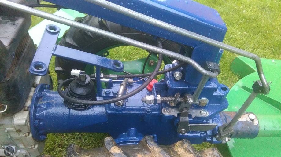 Blokada diferencijala,znači može koristiti pogon samo na jedan kotač kod košnje lijevi ili desni zavisi koji je opterecen ili pogon na obadva kotača zajedno.
