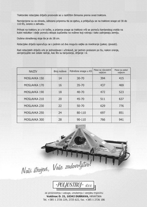 Prijenos snage vrši se preko kardana na reduktor i preko sklopa zupčanika na noževe koji rotiraju do dubine 28 cm.
