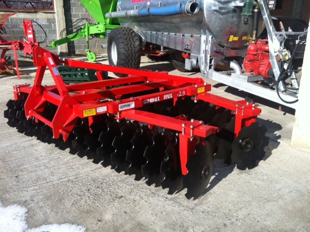 Prodajemo nošenu tanjuraču Consum Bečej, radni zahvat 2,9 m, 32 nazubljena diska, promjer diskova 56 cm, razmak između diskova 19 cm, masa tanjurače 950 kg. Cijena je bez PDV-a. Agromens d.o.o.