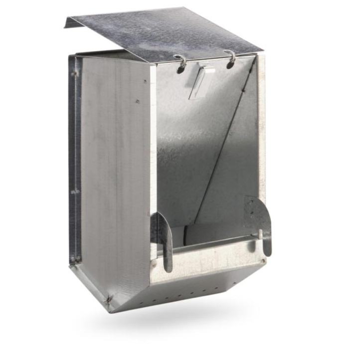Hranilica za kuniće jednodjelna , lako se montira na kavez, na vrhu se nalazi poklopac zbog zaštite i čistoće hrane.