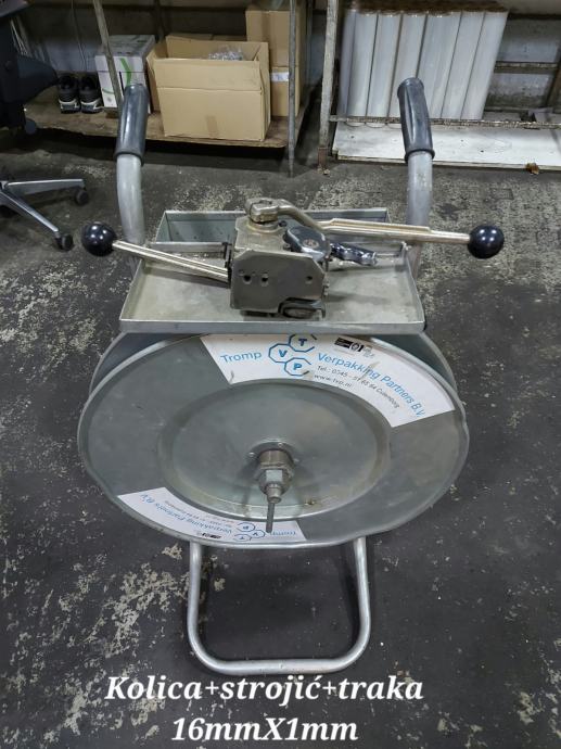 Prodaje se komplet za zamatanje - kolica i čelična traka + kliješta za zatvaranje .