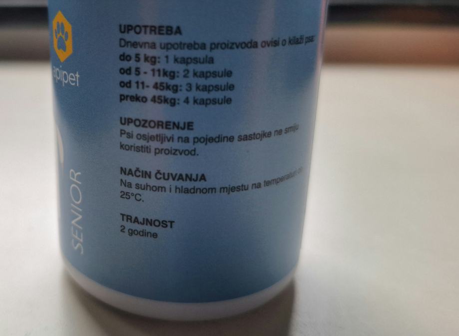 Razlog poklanjanja je taj što se mom psećem senioru ne sviđa okus pa odbija hranu s tim dodatkom (za razliku od Apipet Flexi i Apipet Immuno kapsula koje voli). Voljela bih ih pokloniti nekome čiji pas voli Apipet Senior kapsule.