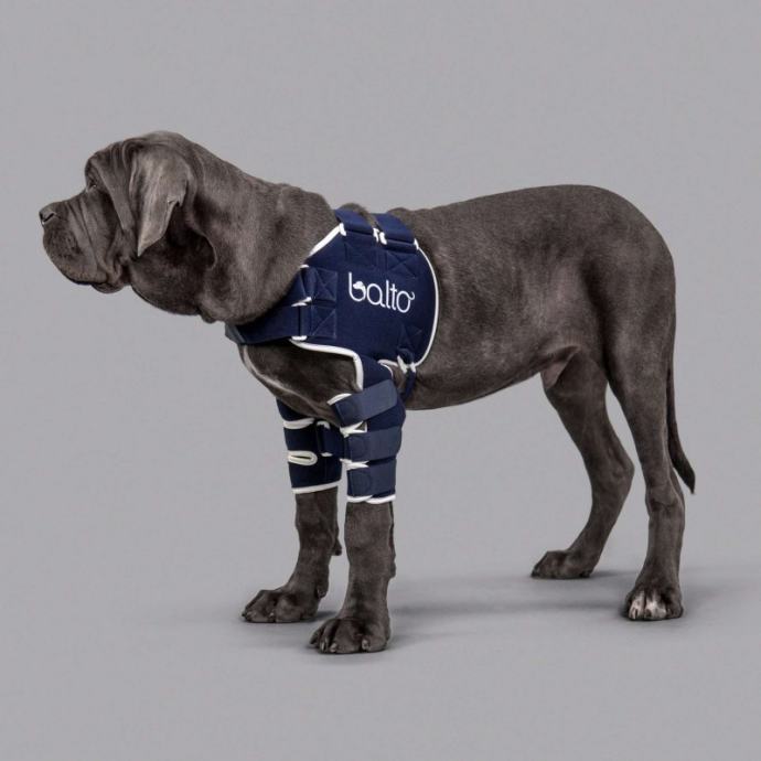 Balto rameni pojas za pse. Pruža podršku kod nestabilnosti, upale i oboljenja ramenog zgloba. Pojas ograničava pokretljivost ramena.