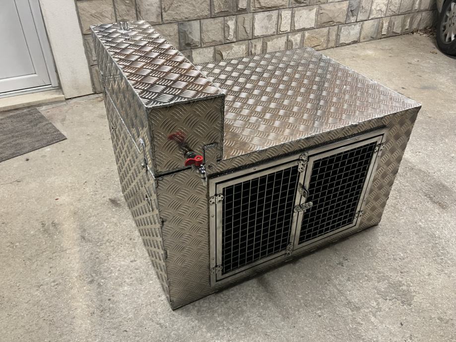Izrađujem aluminijske transportere za pse s inoxnim vratima po mjeri (dimenzije sa slike su 100x70x60) i spremnikom vode zapremnine 28L