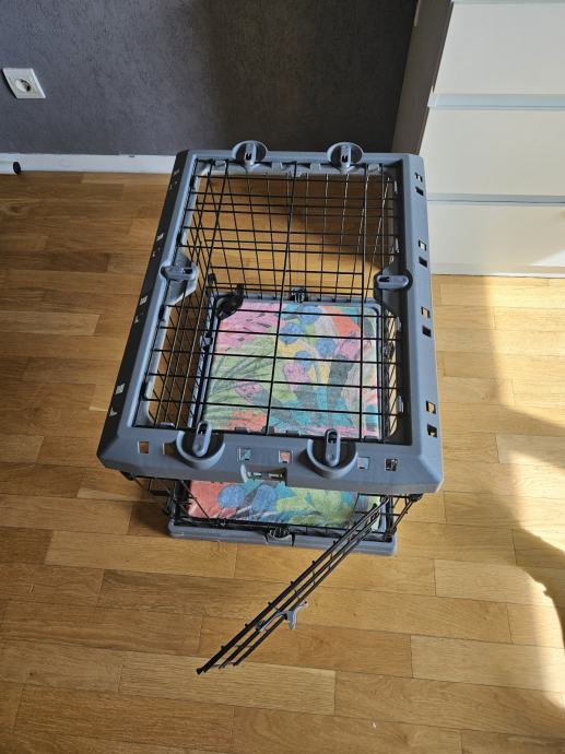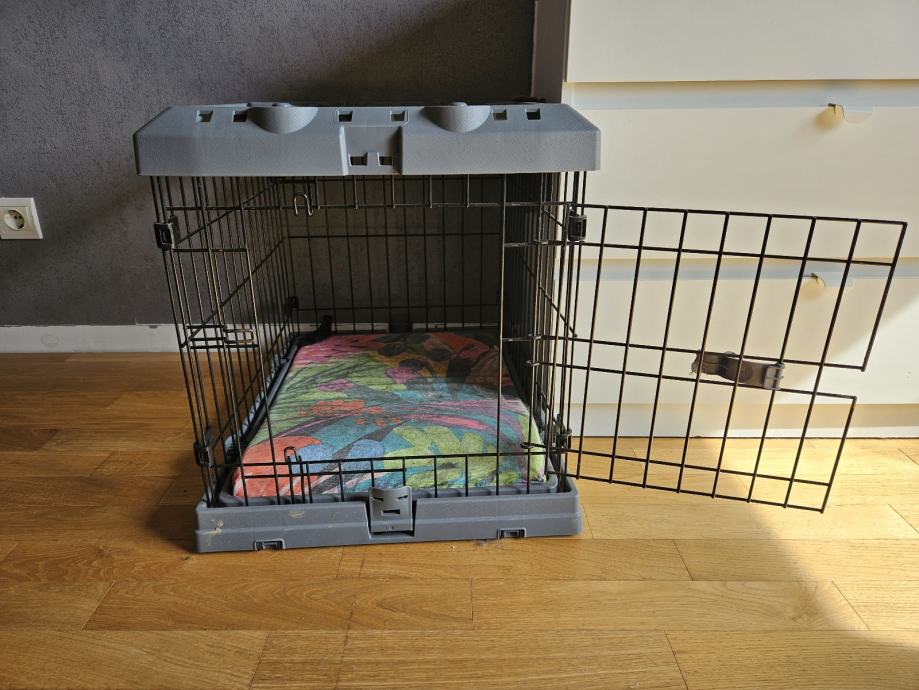 Prodajem rabljeni box za psa s metalnom rešetkom i plastičnim dnom i gornjim okvirom u sivoj boji. Box ima vrata s bravom koja se lako otvaraju i zatvaraju. Konstrukcija je čvrsta i stabilna, a plastično dno olakšava čišćenje. Pogodan za pse manjih do srednje velikih pasmina. Dimenzije 62x47x50, moze se sklopiti.