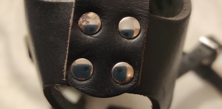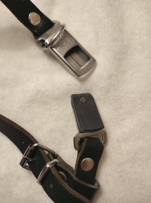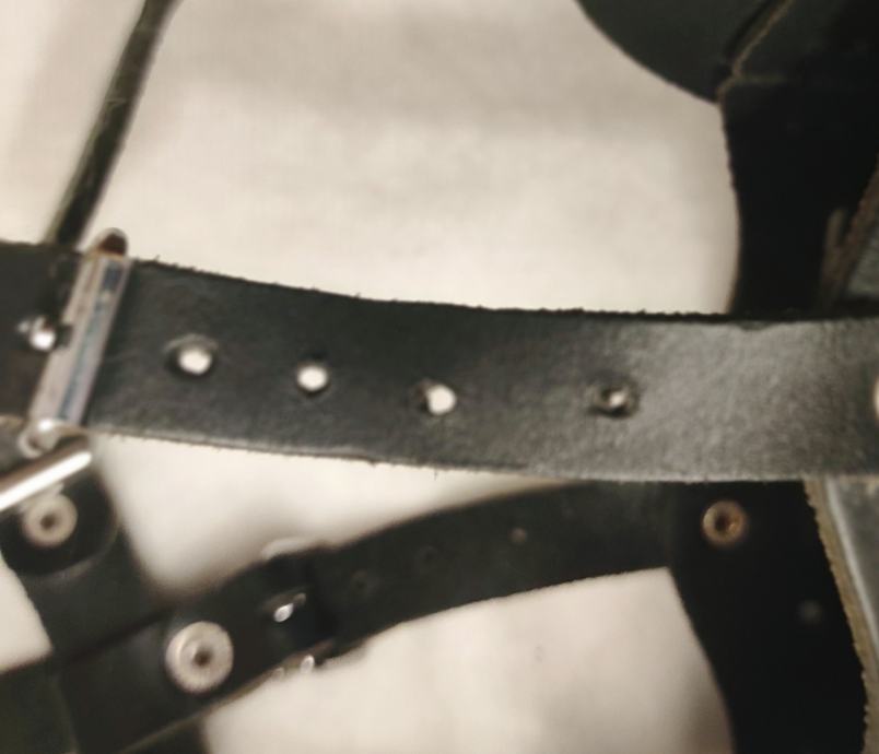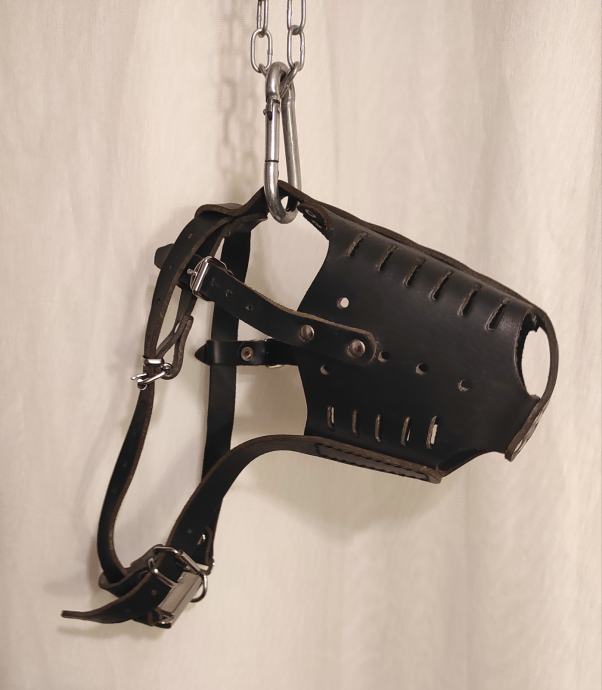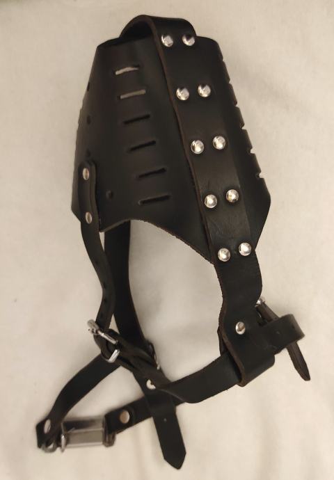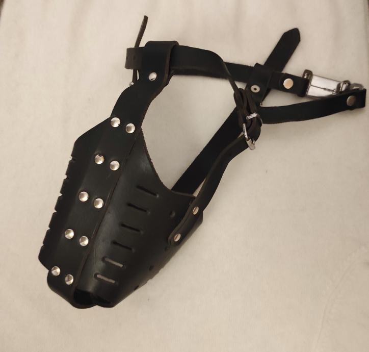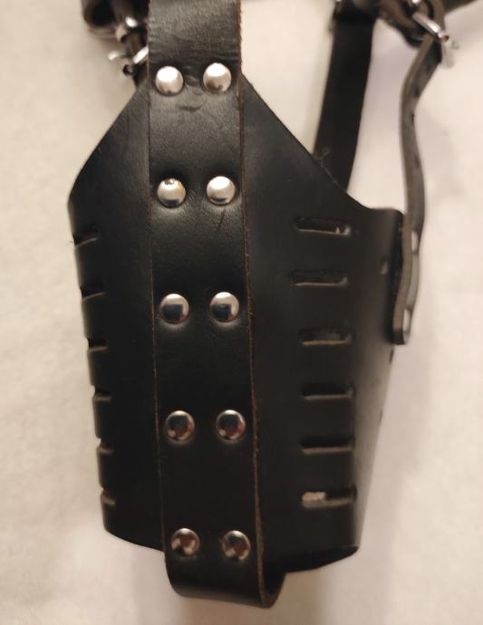 Prodajem crnu brnjicu marke sprenger namijenjenu ženki njemačkog ovčara. Brnjica je izrađena od kvalitetne goveđe kože i čvrsta je. Korištena je nekoliko puta za probu i u odličnom je stanju. Na jednom su bočnom remenu dodatno probušene četiri rupe, a na drugom jedna. Na dvjema metalnim zakovicama su manja oštećenja. Na fotografijama su vidljivi utori na koži, ne posjekotine. Kožni dio je u potpunosti očuvan.
