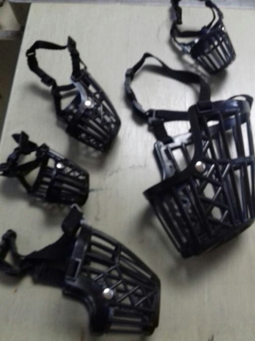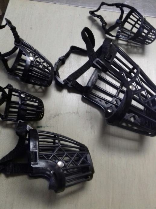 Prodam brundu za psa .ima mekanu kožnu zaštitu za nos.U paketu su različite veličine, prodam manje veličine koja paše za 39 kn. po Kom .a vece do 69 kn Sve za 450 kn.Mogu poslati poštom.