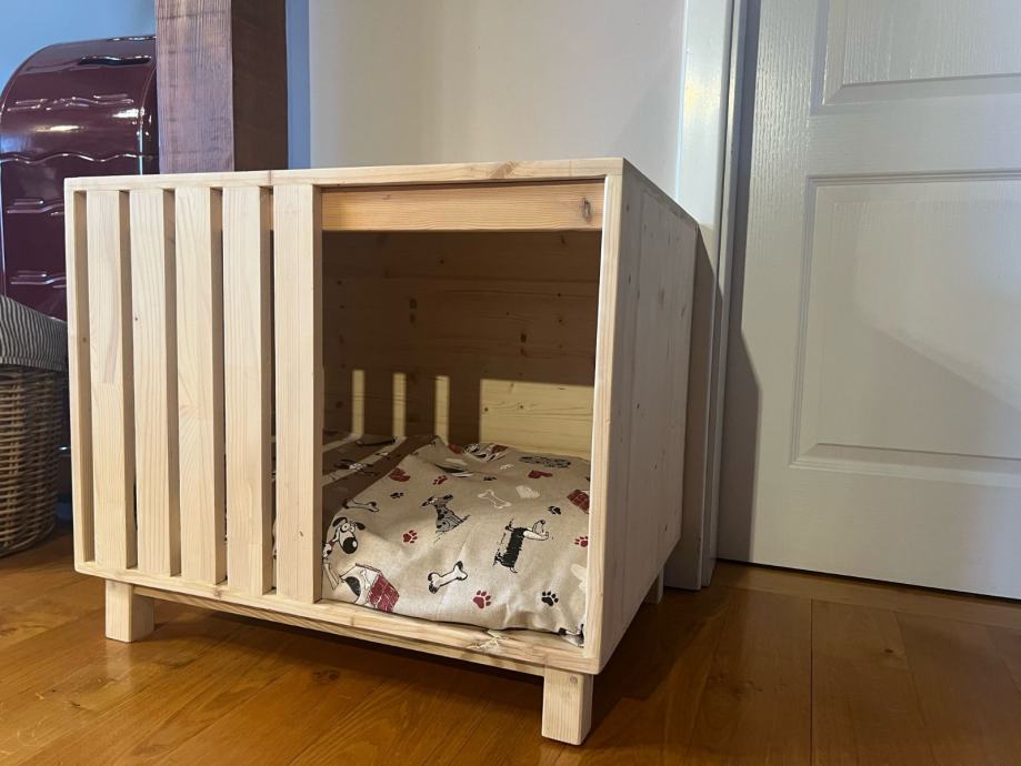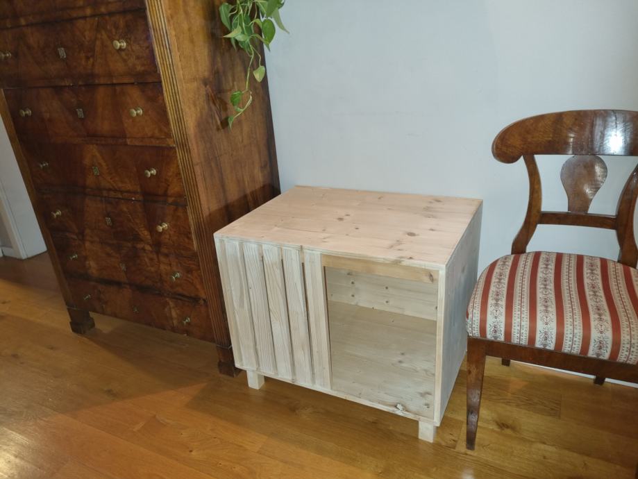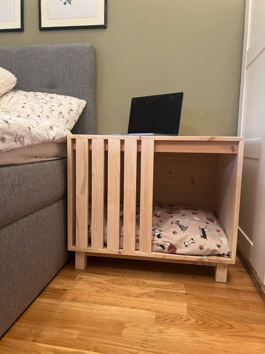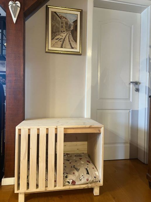 Drveni namještaj za psa ili mačku . Krevet za unutarnji prostoru.