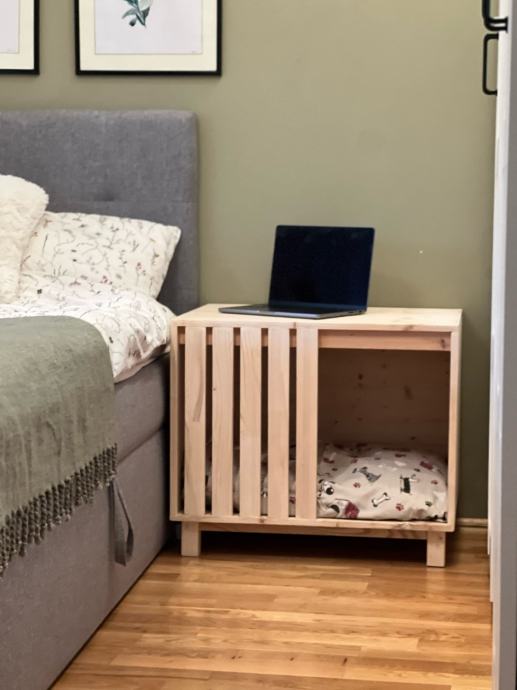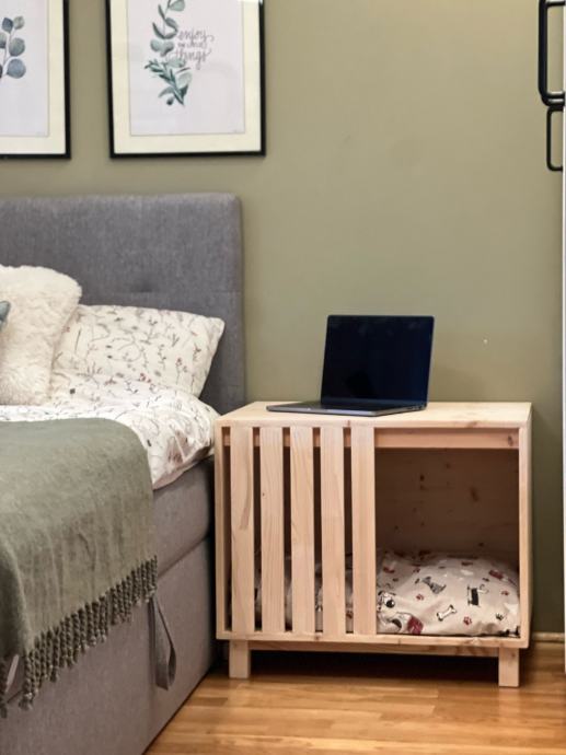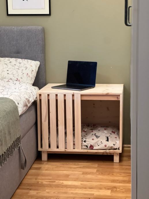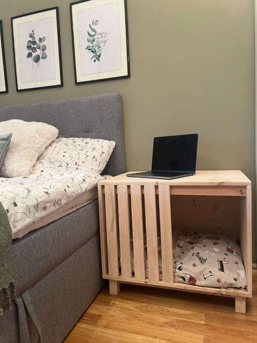 Drveni namještaj za psa ili mačku . Krevet za unutarnji prostor u obliku namještaja.