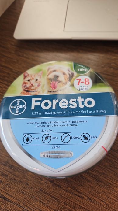 Prodajem novu neotvaranu Foresto ogrlicu protiv krpelja i buha za manje pse i mačke do 8 kg. Proizvođač: Bayer.