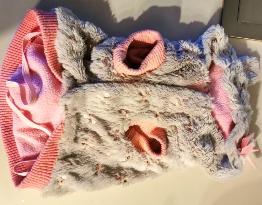 Topla jakna sa kapuljačom za malog psa, kao nova, nošena par puta, dužina od kapuljače 36cm