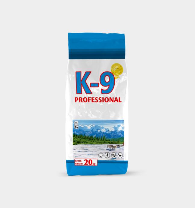 K-9 Losos professional 20 kg superpremium hrana za pse, normalne i aktivne koji su prošli fazu rasta. Baza piletina sa dodatkom Lososa i Lososovog ulja.