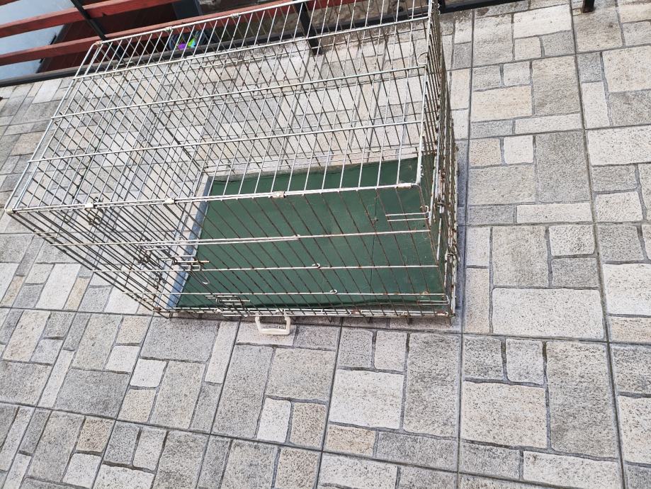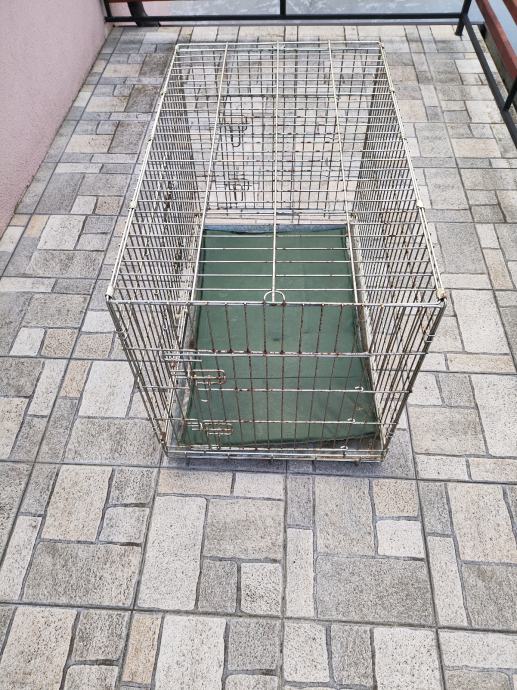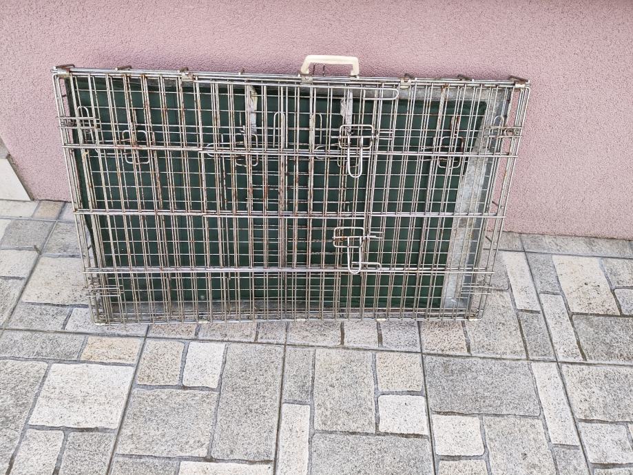 Sklopivi kavez za prijevoz psa ima vrata sa dvije strane . Ima korozije od stajanja zato je cijena povoljna