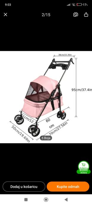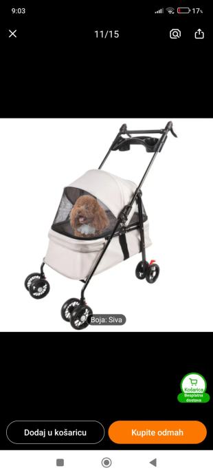 Prodajem kolica za psa sive boje korištena dva puta kratko u odličnom stanju kao nova.