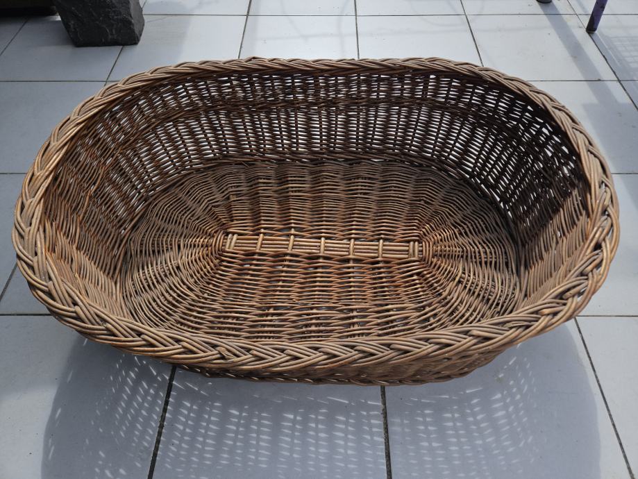 Pletena košara za psa, dimenzije: dužina 85cm, širina 55cm i visina 25cm.