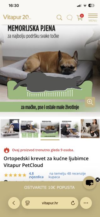 Kupljen u Vitapuru u prosincu 2025. Pas nece spavati u njemu. Kao nov. dimenzije krevetica: 86*64*15 cm.