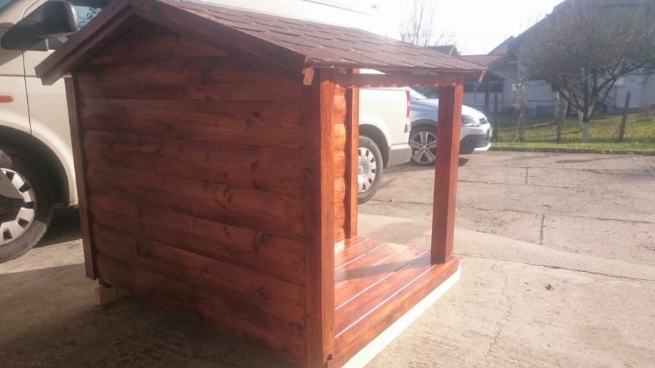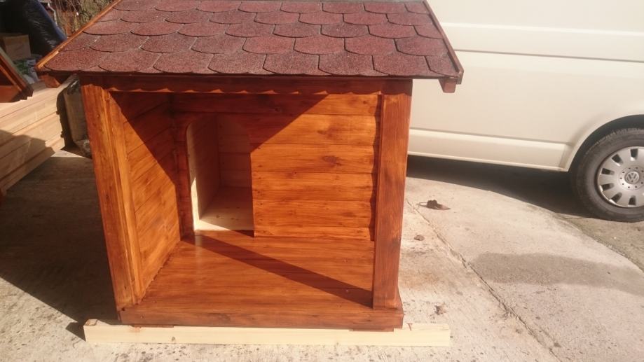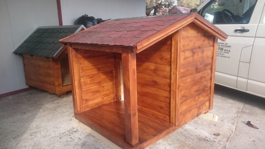 Kućica za srednje pasmine, izolirani model, krov na dvije vode, natkriveni trijem.