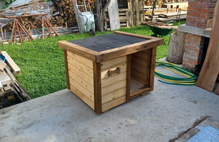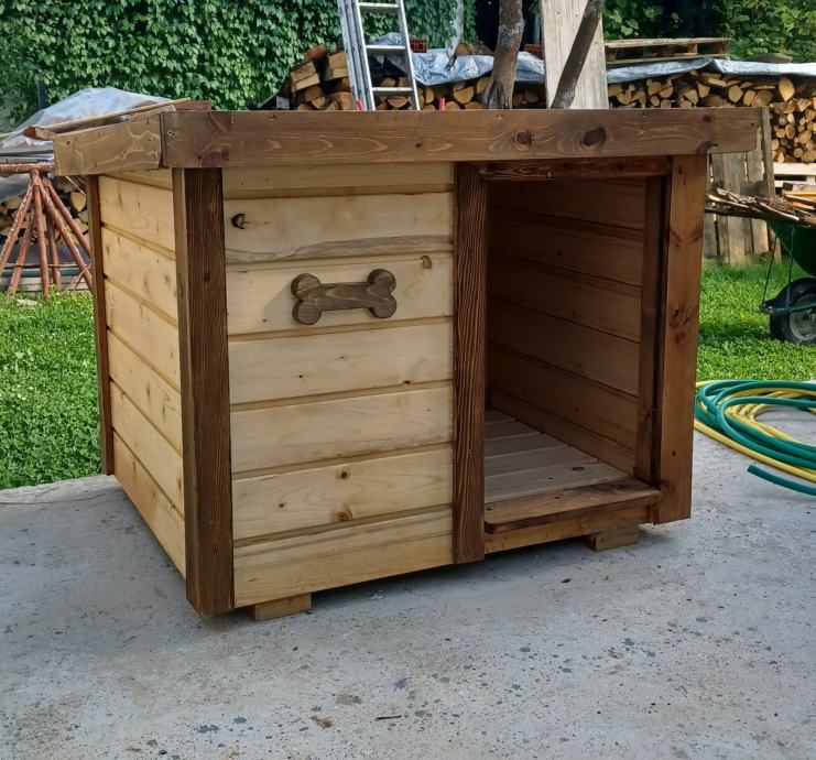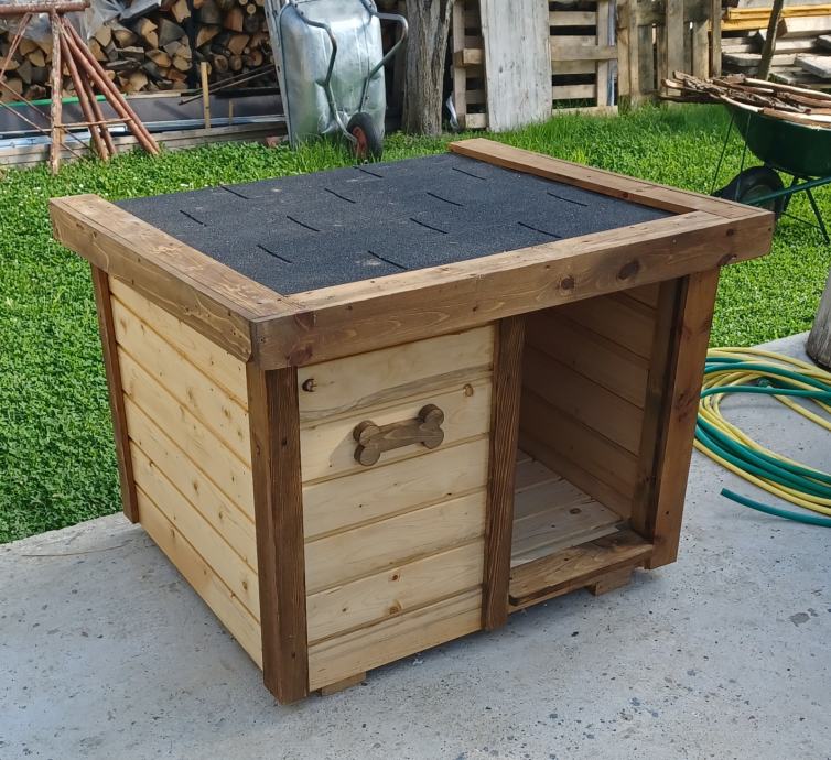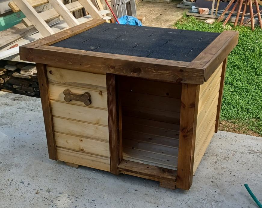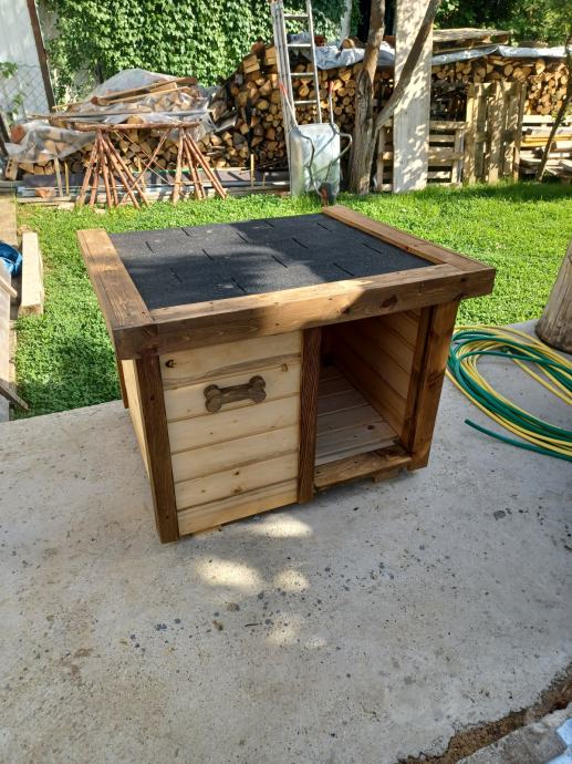 Kućica za psa NOVA.Kucica premazana lazurom za zastitu drva u dva sloja.Duljina 100 Sirina 80 Visina 80.Mogućnost dostave.Zvati na 0955064663