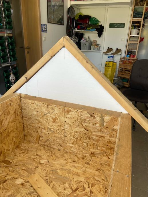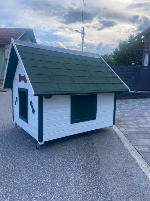 Prodajem kućicu za velike pse.Kućica je kompletno izolirana iznutra stiroporom od 5 cm.Izvana je lamperija,stiropor i na kraju iznutra osb ploča.Dugačka je 138 cm,široka 120 i visoka 135 cm.Krov je prekriven šindrom.