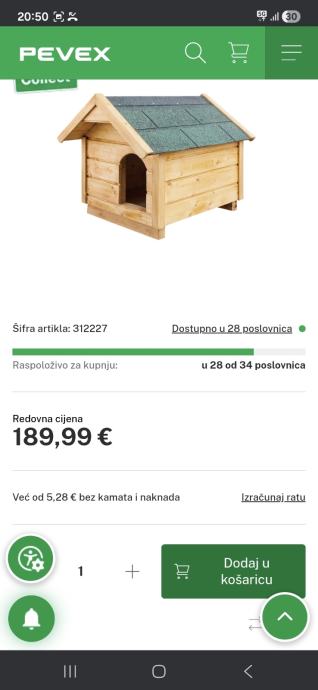 Kučica kupljena u Pevexa prije misec ipo dana placena 190eura al se ne koristi