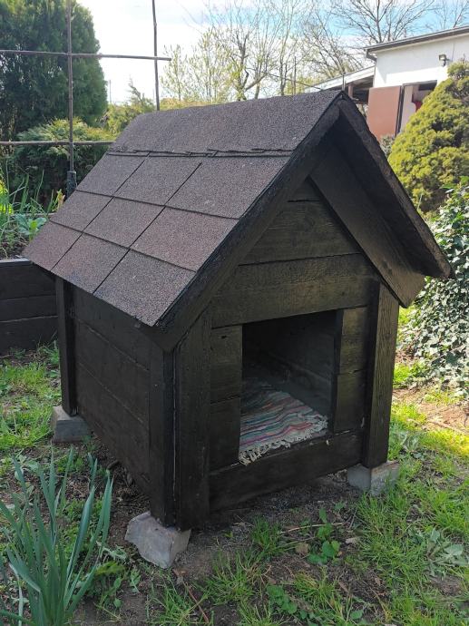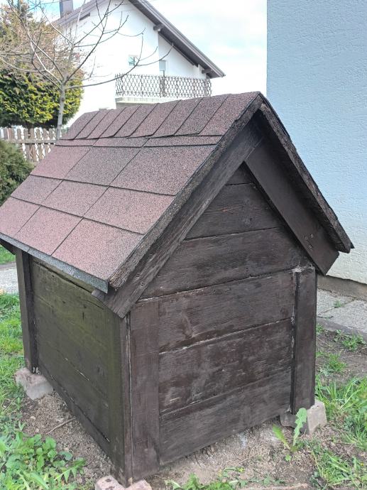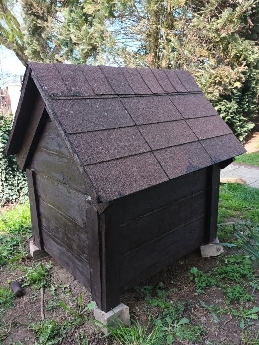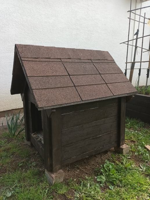 Dimenzije širina 70 cm,dužina84 cm,visina96 cm.Otvor 30cm×35cm.Matrijal puno drvo,krovni pokrov šindra.Boja palisander.Osobno preuzimanje u Hrvstskom Leskovcu.0916999367