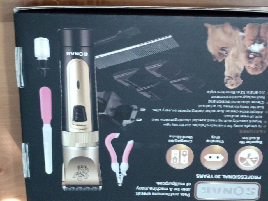 Prodam set za šišanje kućnih ljubimaca sa svim priborom kliještima i za nokte,ili panđe.To je najnovija garnitura na tržištu. Sluzi za cijeli niz god.upotrebe.Soecifikacije na slikama, vrijednost 99 e.,Moguća dostava postom.