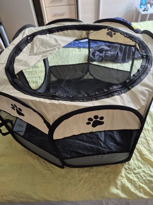 Ogradica za pse, nekorištena. Lako se instalira, sklopiva. Dolazi sa gornjim pokrovom.