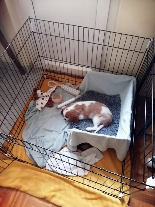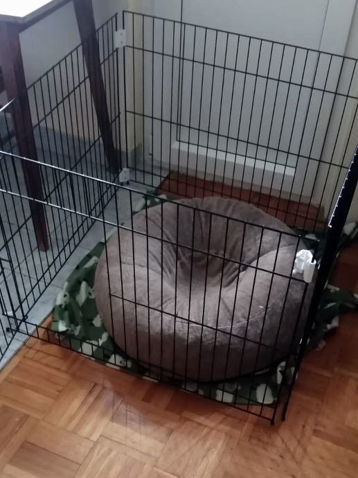 Korištena svega par mjeseci za " crate training " i odgoj štenca. Jednostavno se sastavlja i rastavlja. Po potrebi se sa sklopkama može smanjiti prostor u kojemu boravi štene.