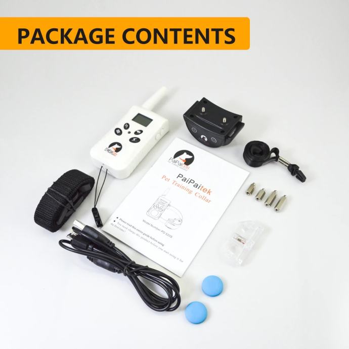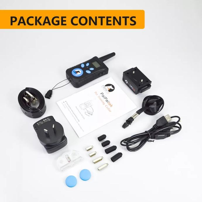 U Kompletu sve 1 x daljinski, 1 x prijamnik , 1 x Test Light, 1 x ogrlica, 1 x kabel, punjač, 2 x šok elektrode kraće i 2x duže elektrode za dugu dlaku