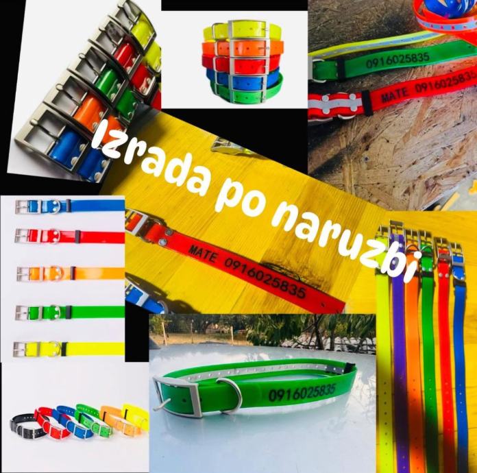 Izrada ogrlica za pse u vise boja. Tisak imena i beoja vlasnika. Pogodna za Gps uređaje.