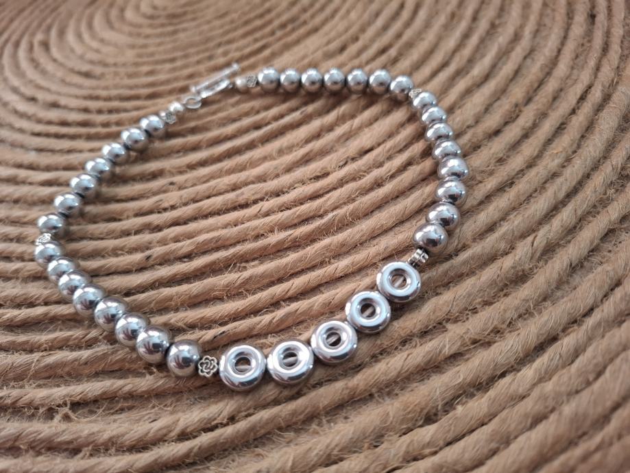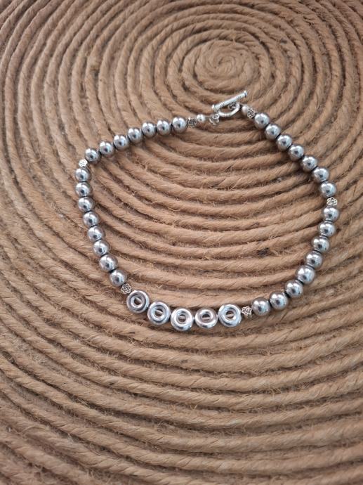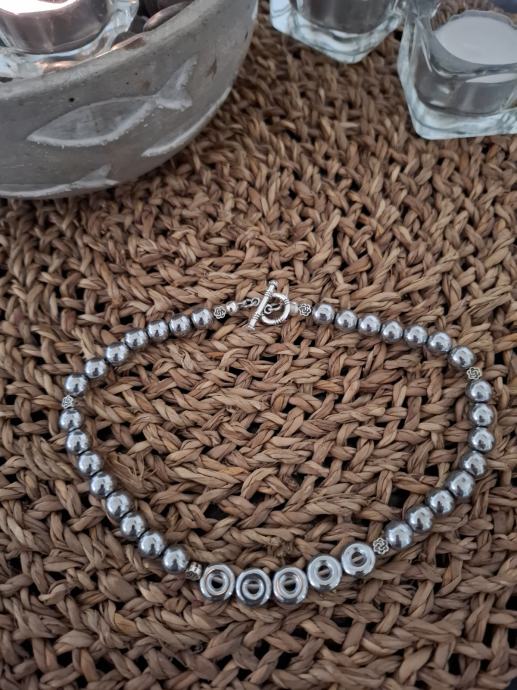 Materijali...poludragi kamen - srebrni hematit, celicni elementi & tibetansko srebro