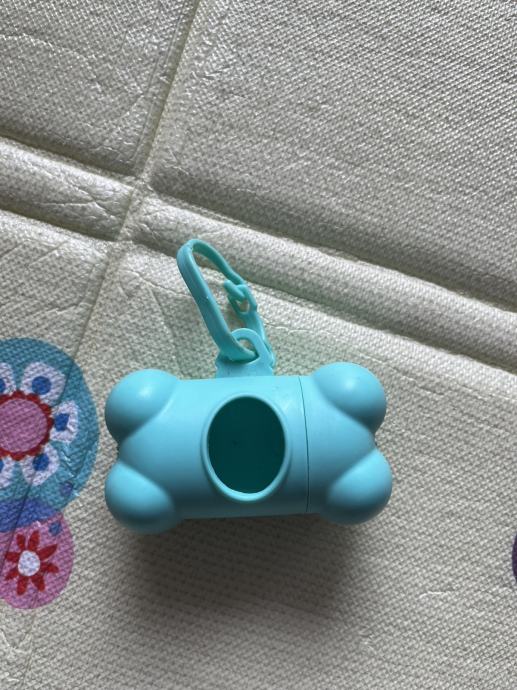 Spremnik za vrećice za kućne ljubimce za izmet sa kukicom za objesiti na povodnik ili torbu.