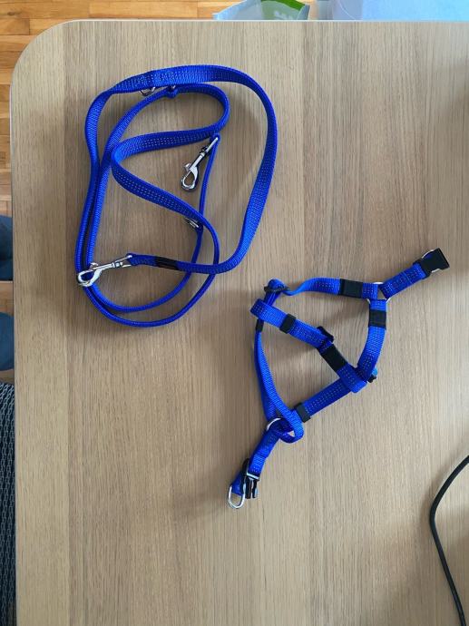 Povodac i orma/ham/oprsnica za pse. Plave boje. Materijal: tekstil.