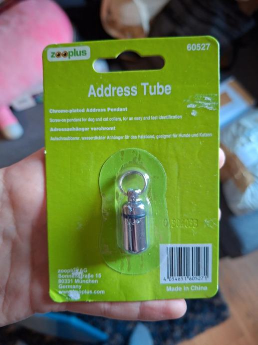 Privjesak za ogrlicu za psa, novo, nekorišteno. Odvrne se i unutra stavi papir s podacima.