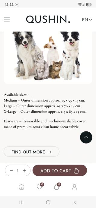 Prodajem novi, svega 2,3 puta koristen Qushin jastuk (krevet) za psa. Nema ostecenja niti tragova koristenja. Opran i ceka novog vlasnika. Prodaja iskljucivo na podrucju Zagreba.