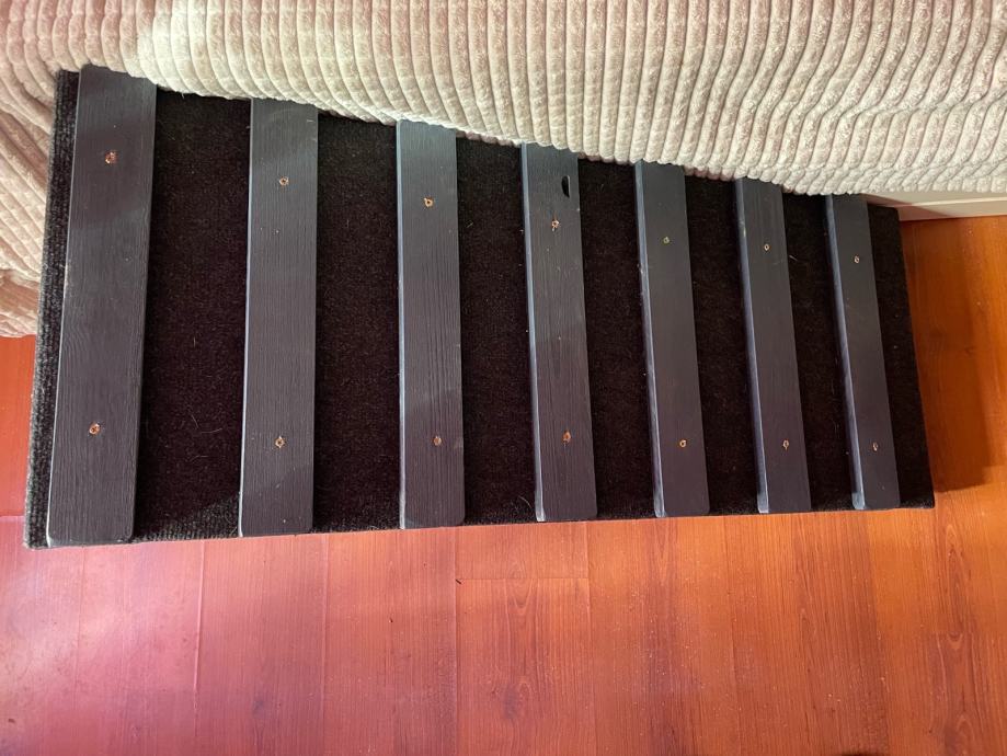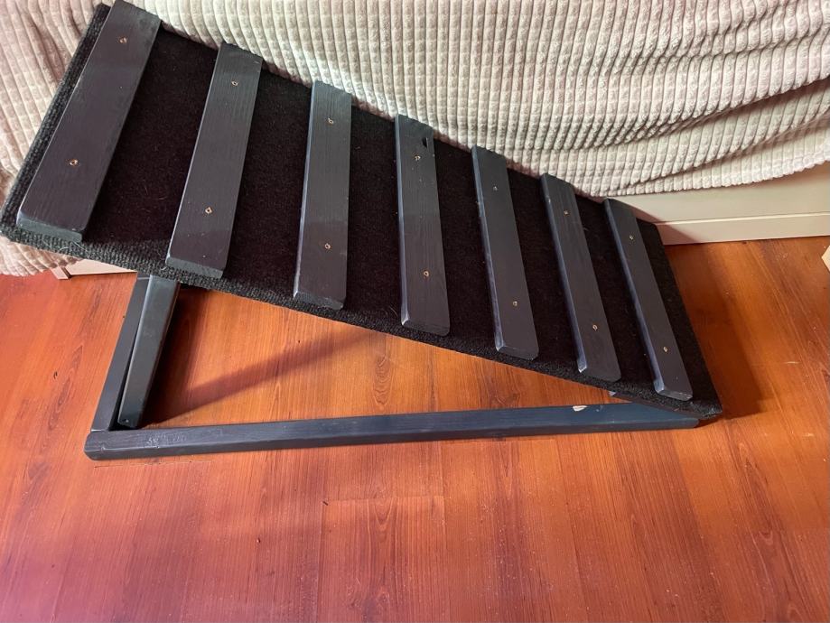 Prodajem kvalitetnu rampu od punog drveta za pse, nikad ne koristenu, antracit boje 100x40 cm. Jako je izdrzljiva i moze podnijet tezinu velikih i teskih pasa. Tepih je neklizajuci, mada sam dodatno sdala staviti i poprecne letvice da im se lakse penjati.