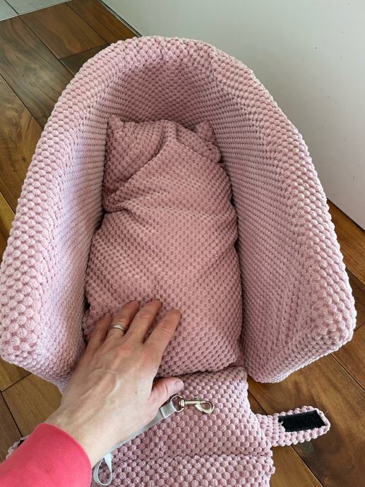 Novo, korišteno doslovce par puta.Može se pričvrstiti za auto.Prikladno za manje psiće!