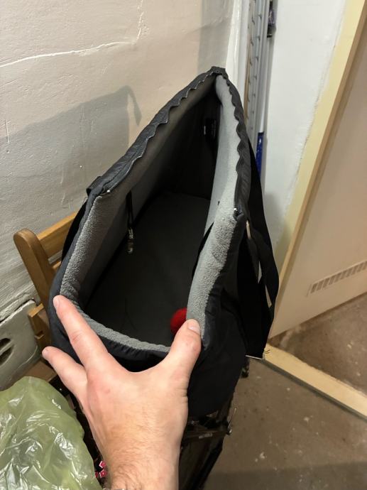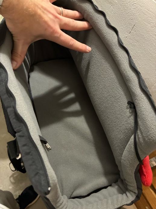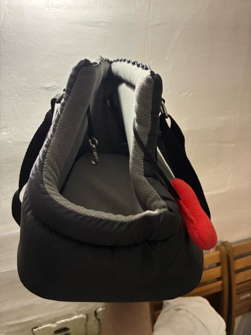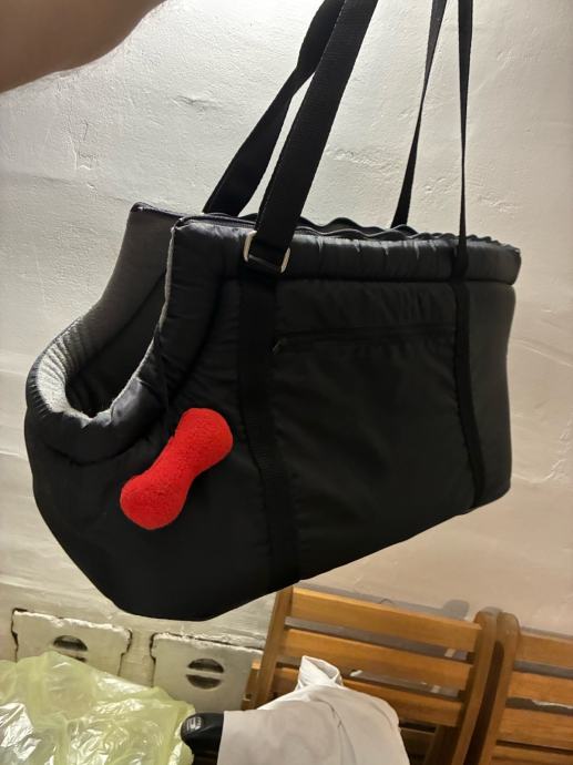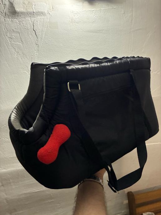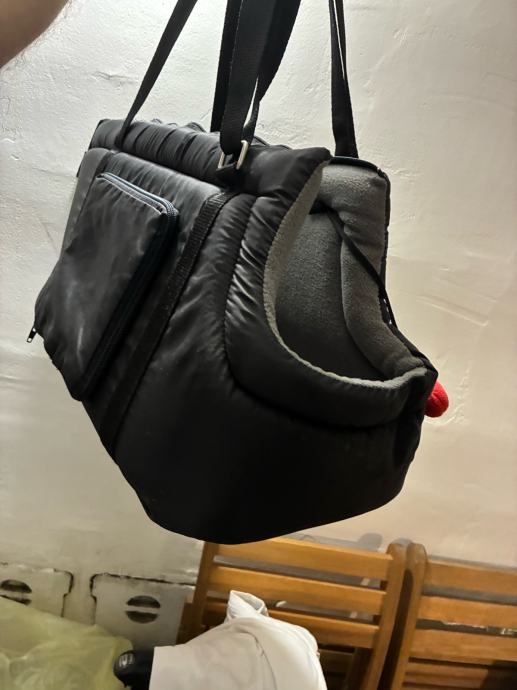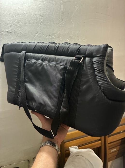 Torba ima dva pretinca, zatvarač, i nafutrana je iznutra. Ima otvor za glavu, tako da pas ne može ispasti. Unutra ima i kopču da se pas zaveže za ovratnik. Korištena svega par puta, kao nova.