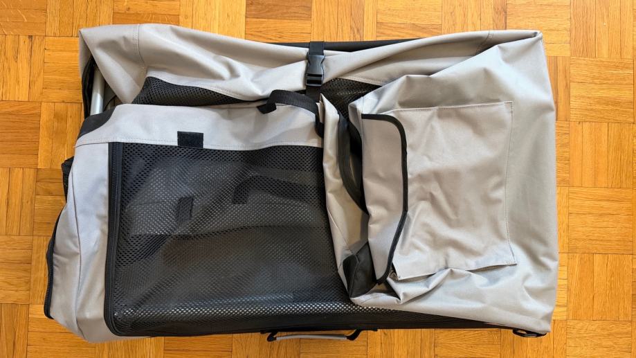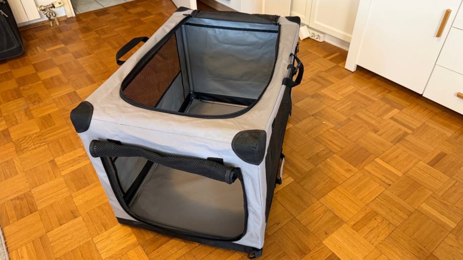 Prodajem transporter za psa za vožnju u autu ili općenito, rabljen ali kao nov: čist, bez dlaka i bez mirisa. Dimenzije: duljina 77 cm, širina 51 cm, visina 48 cm. Može se složiti i ne zauzima puno prostora kad nije u uporabi.